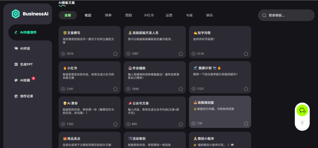 涵盖营销推广、智能写作、校园教育、编程以及AI聊天机器人