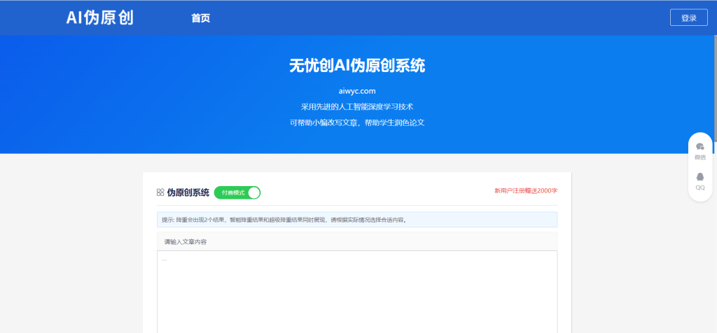 无忧创-AI伪原创是一款基于人工智能技术的文章伪原创工具,效果一流且性价比极高
