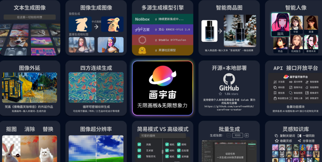 画宇宙集全球新兴的AIGC (AI Generated Content)技术,!赋予用户随心所欲、自然流畅、高能硬核的AI创作力量,致力于一一让每个人都能享受无限的AIGC创作乐趣与有创作成就